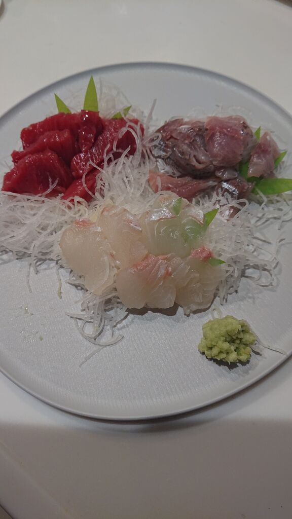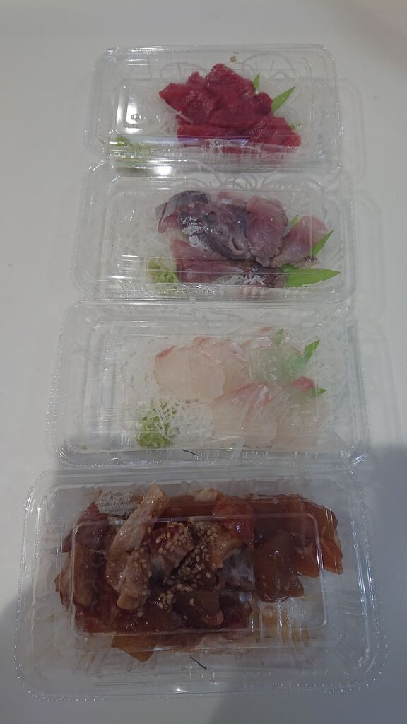ヅケ150円。マグロ、カンパチ、サーモンなどの