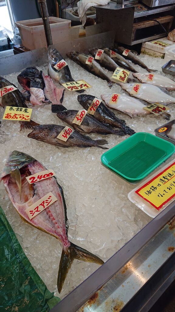 今回はお魚が並んでいるお店の様子を