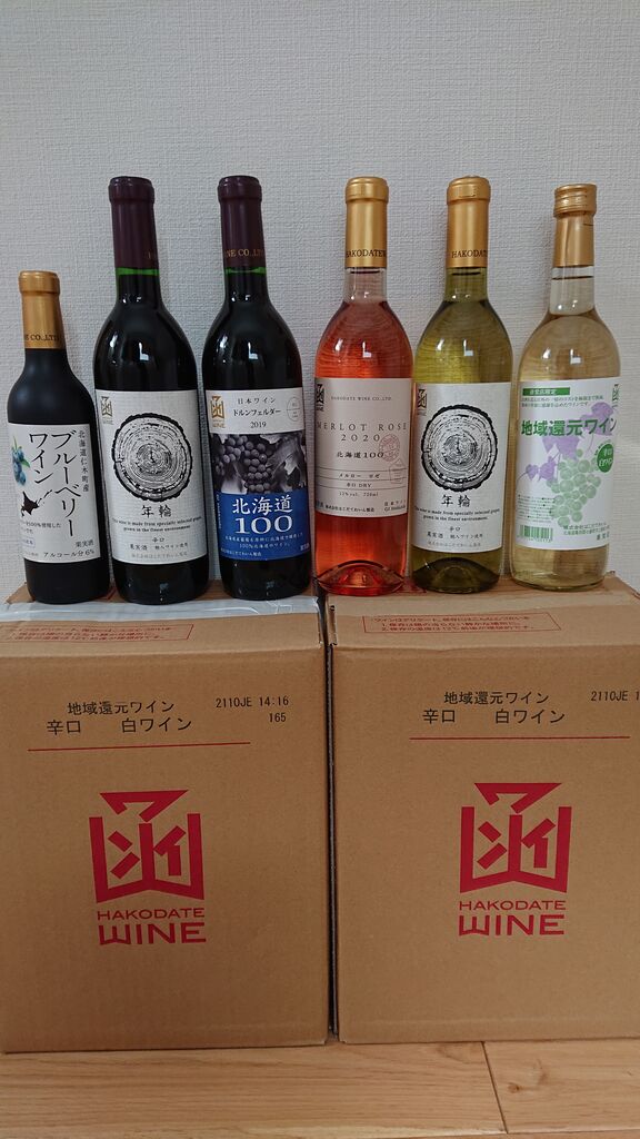 右から地域還元ワイン辛口白12本