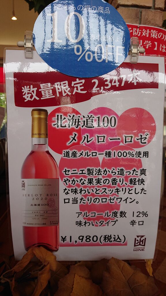 北海道100メルローロゼ1782円