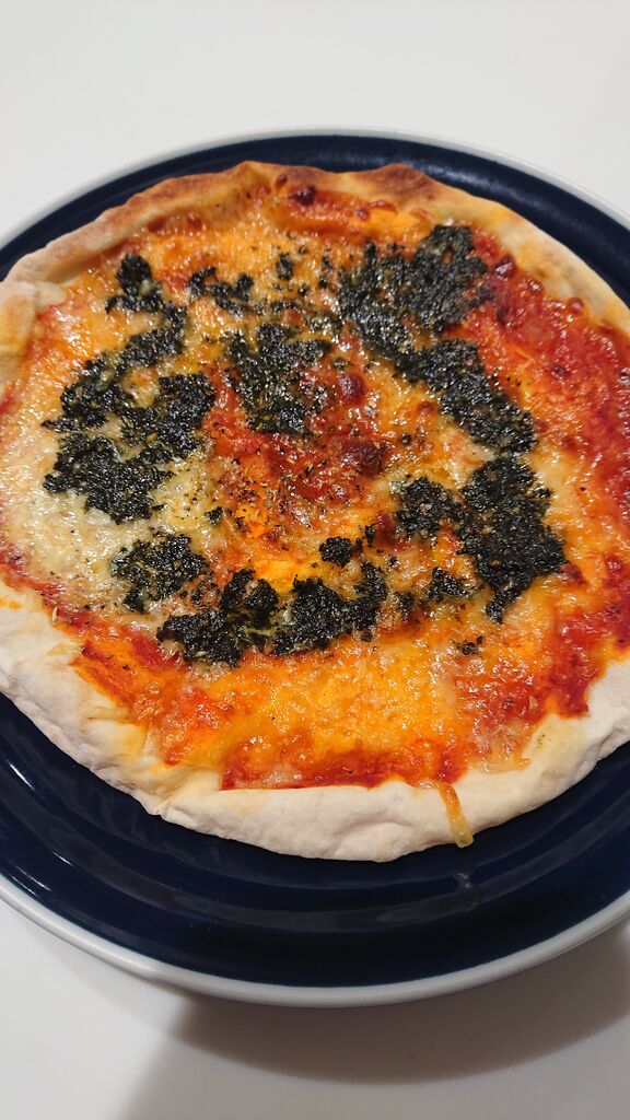 安い焼くだけのピザにバジルペーストを