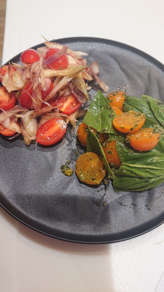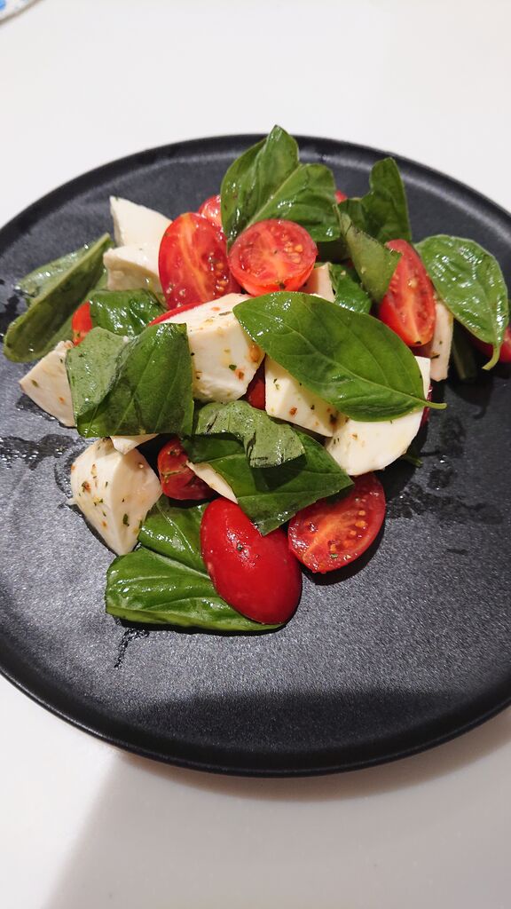 ミニトマト、モッツァレラ、バジルでサラダ。