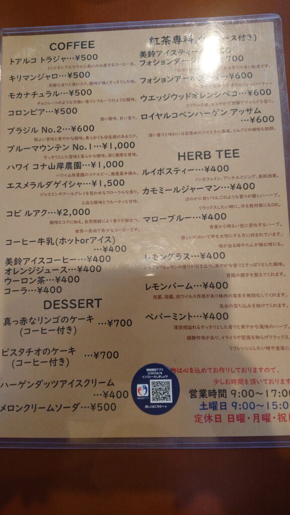 お店は日曜、月曜、祝日はお休みで