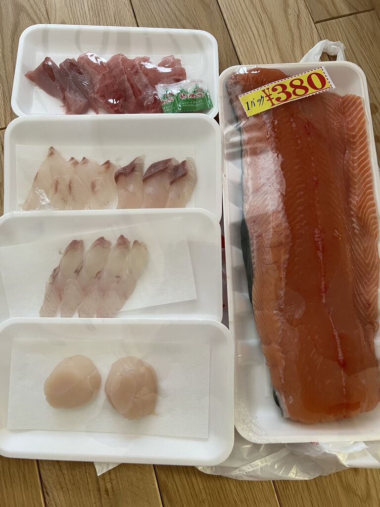 マグロ、カンパチ、ヒラメ、ほたて