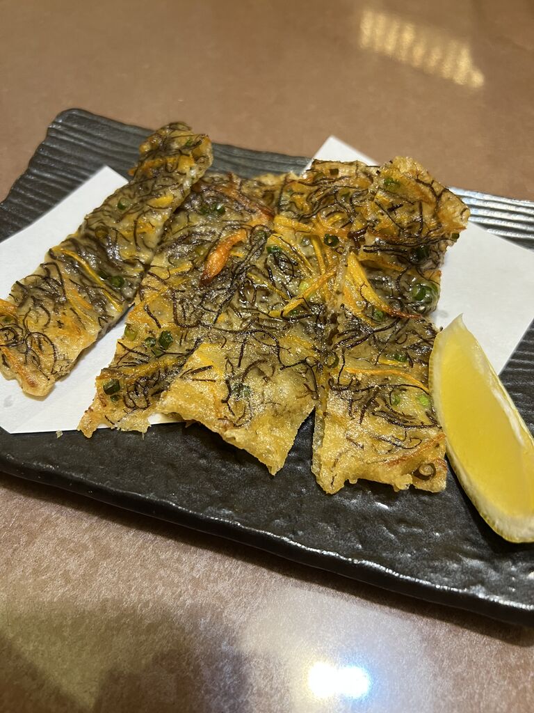 薄くてちぢみを揚げたような感じ。