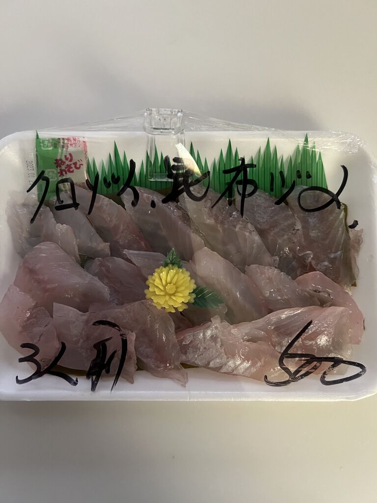 天然ブリ500円活石ガレイ昆布じめ500円