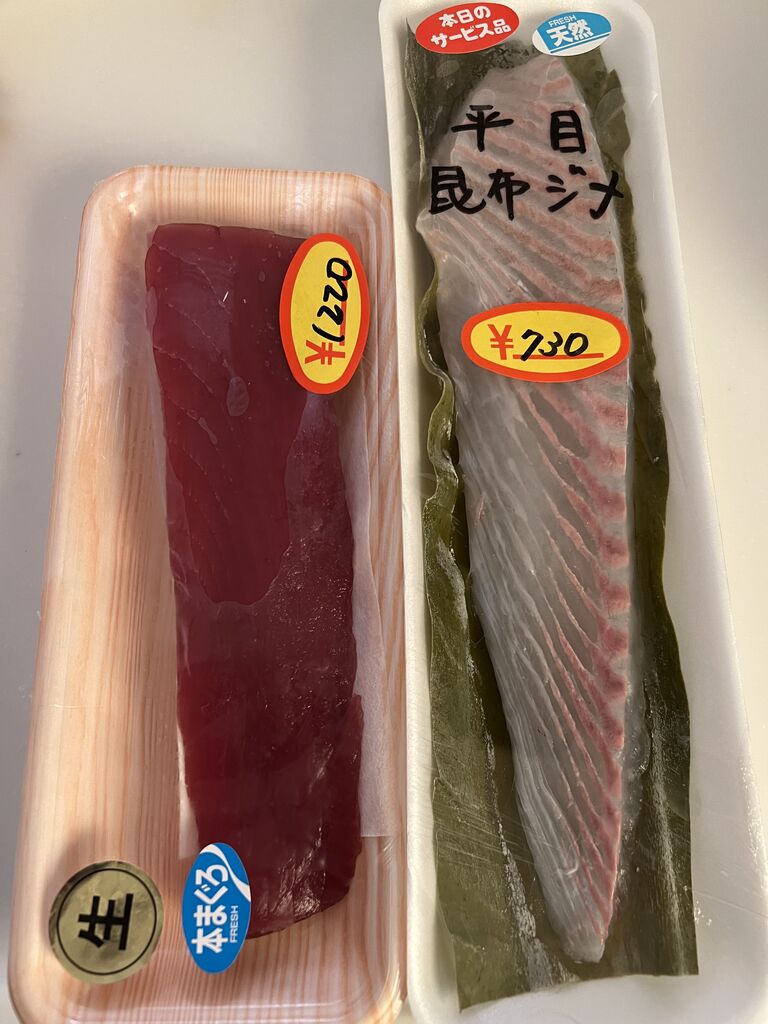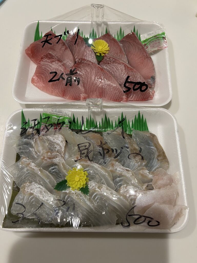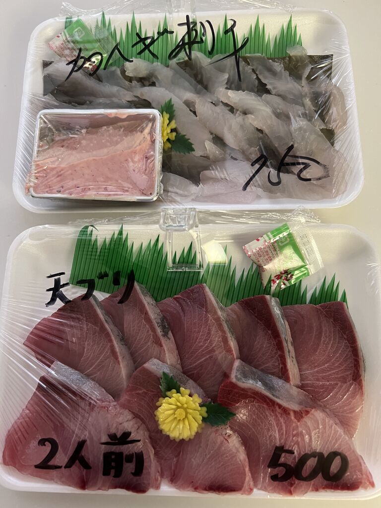 カワハギ750円と天然ブリ500円
