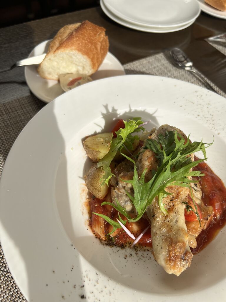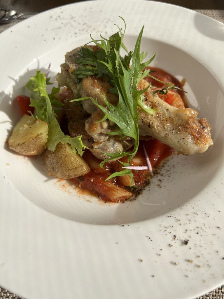 メインはお肉で骨付きチキンの香草オイル焼き