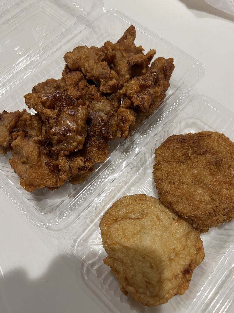 今回は唐揚げとカニメンチ、玉ねぎを購入。