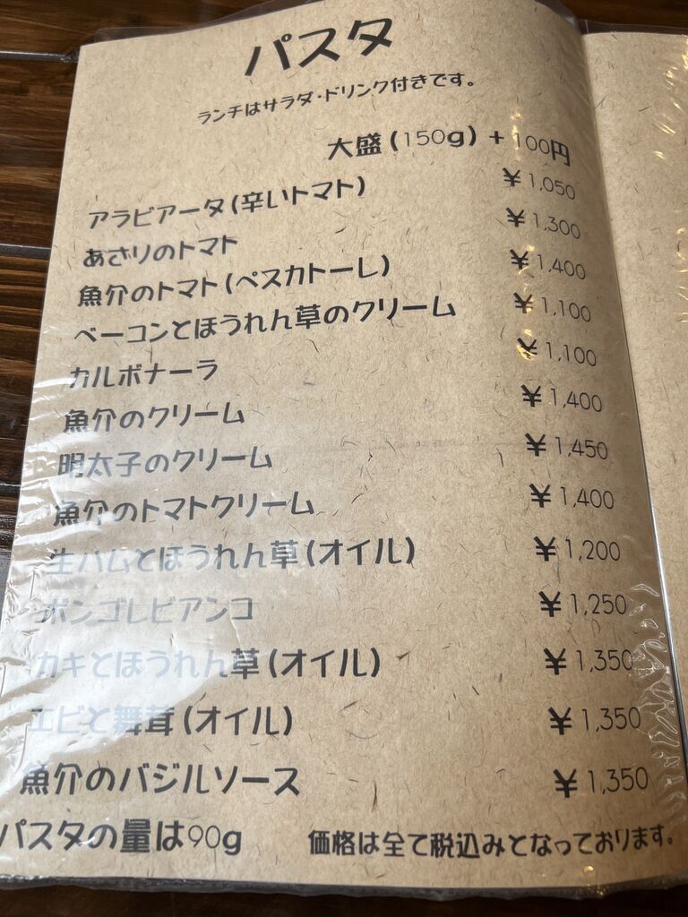 パスタは100gから90gに。