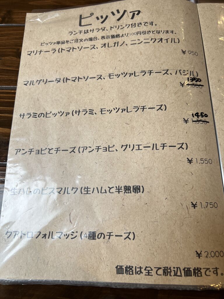 パスタかピッツァの価格に