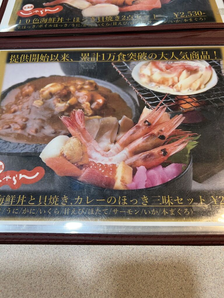 ミニ海鮮丼と貝焼き、カレーのほっき三昧セット