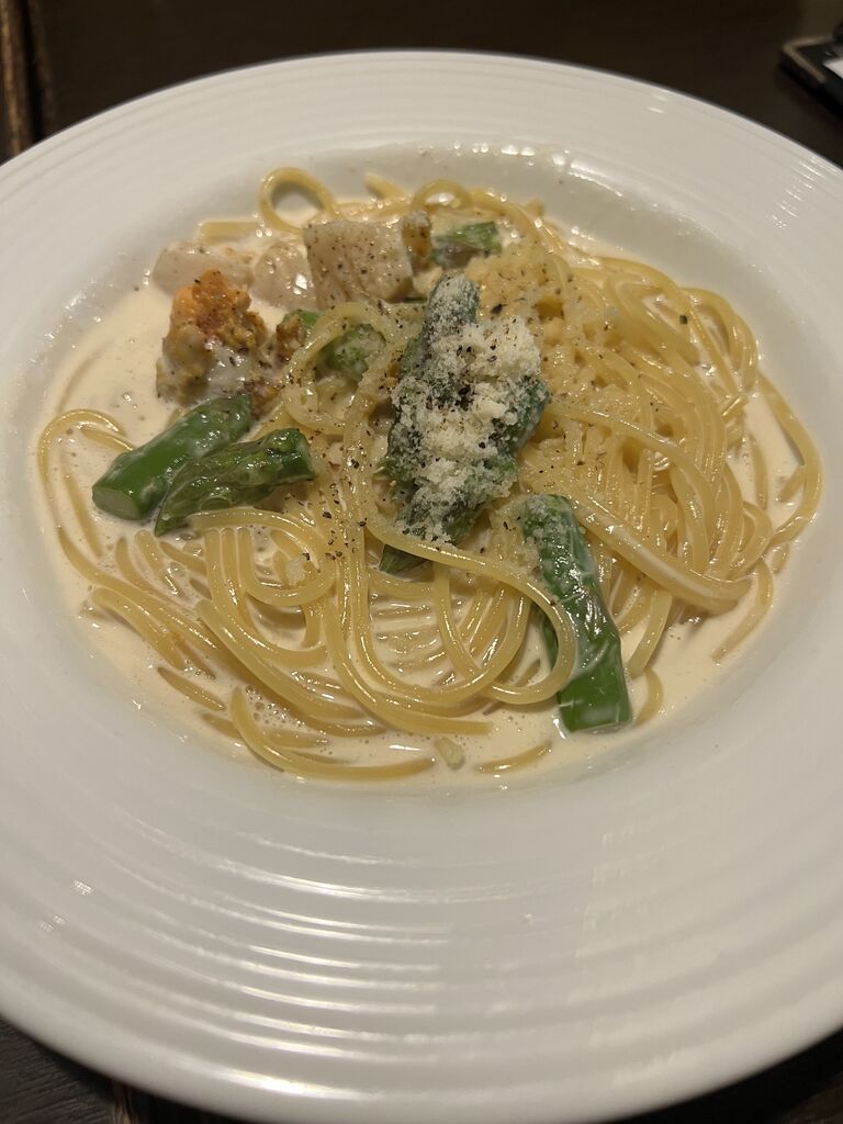 パスタはクリーム系にしたので