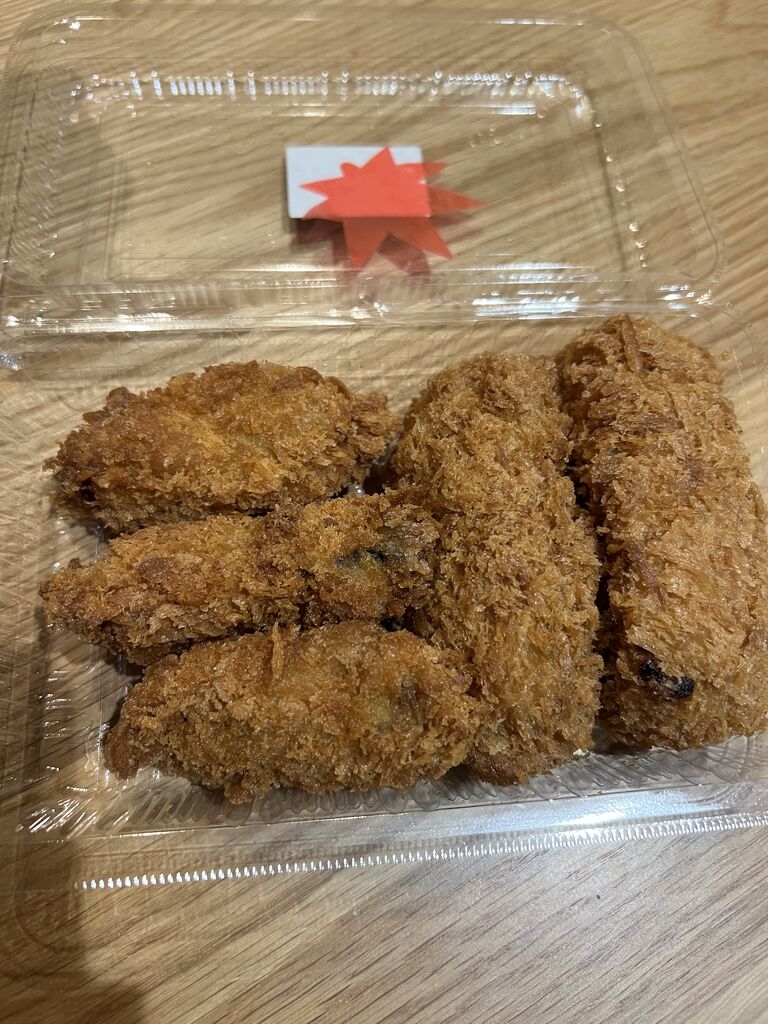 カキフライ3個とクリームコロッケ2個。