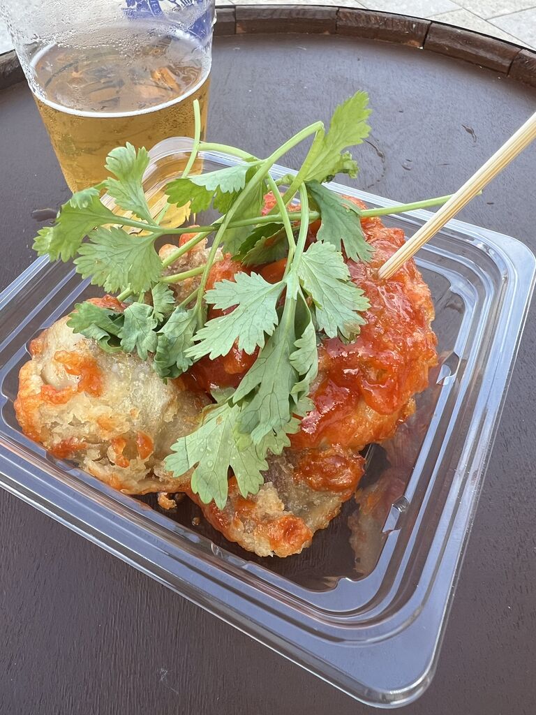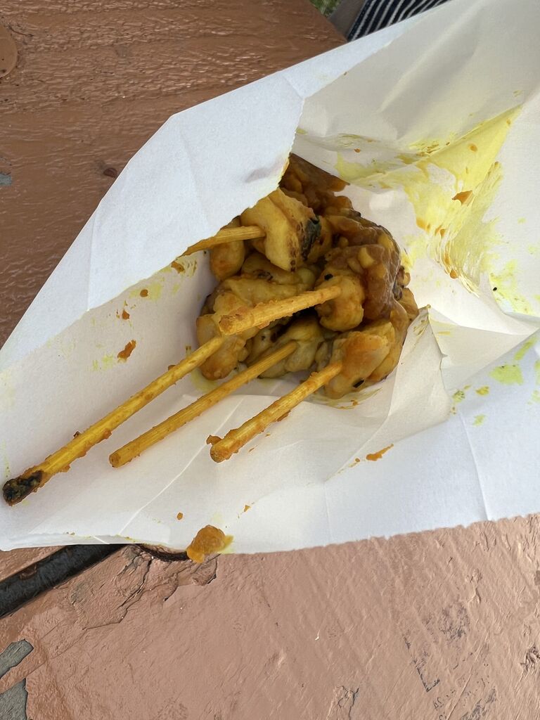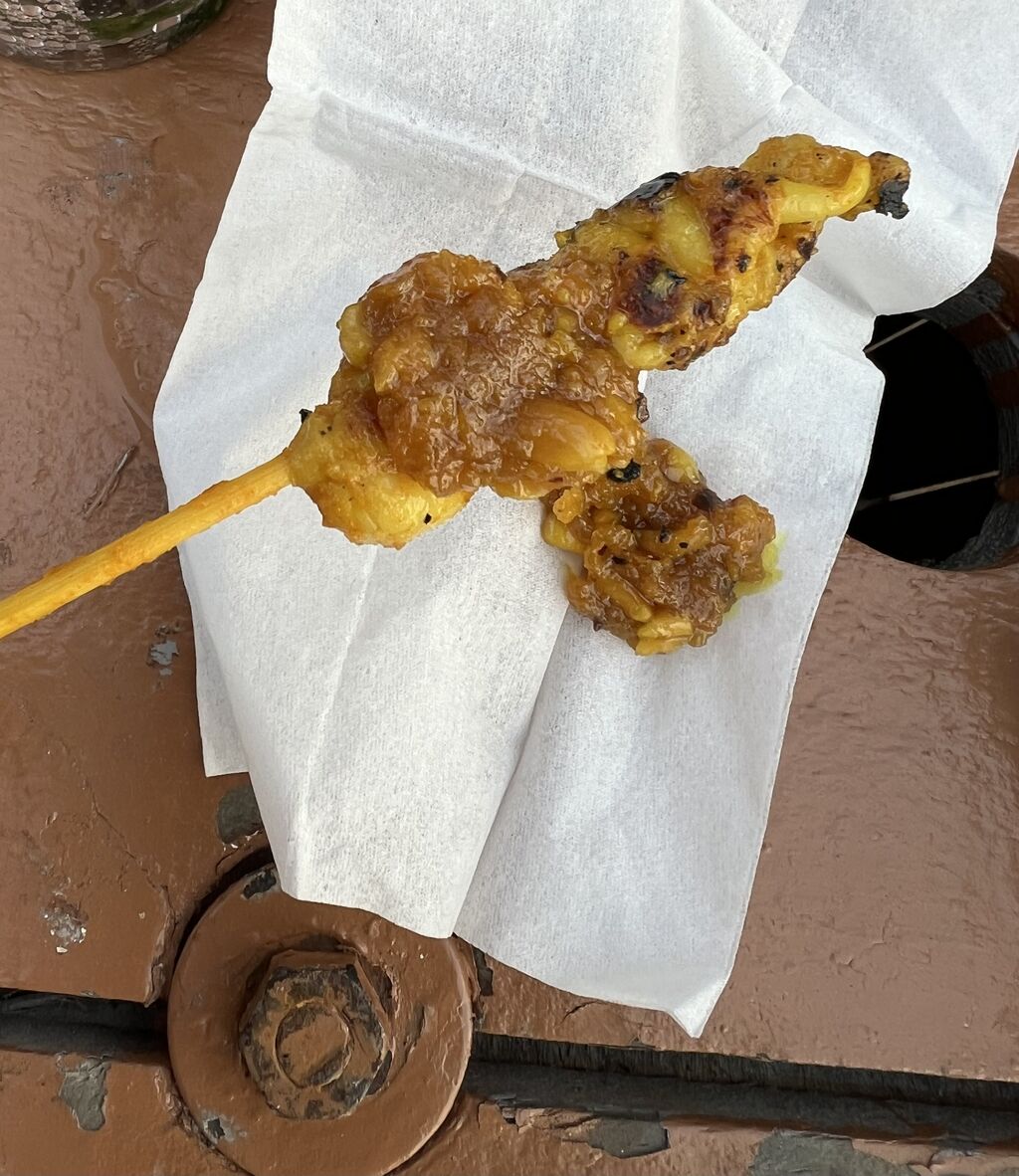 ナッツの入った甘ーいソースがかかった焼き鳥。