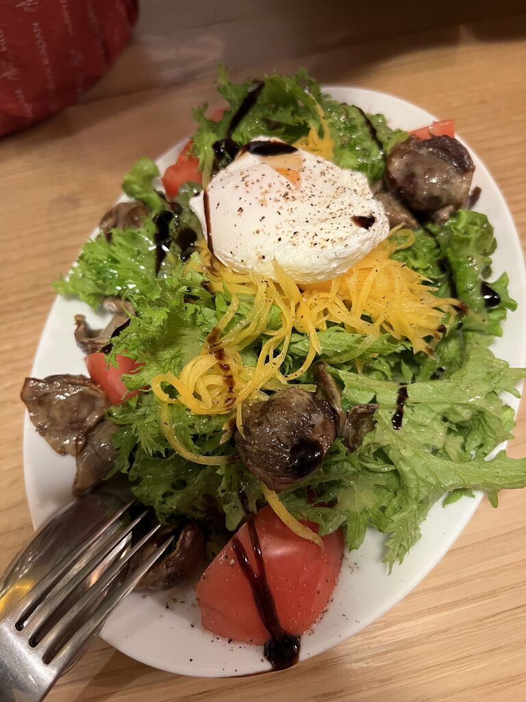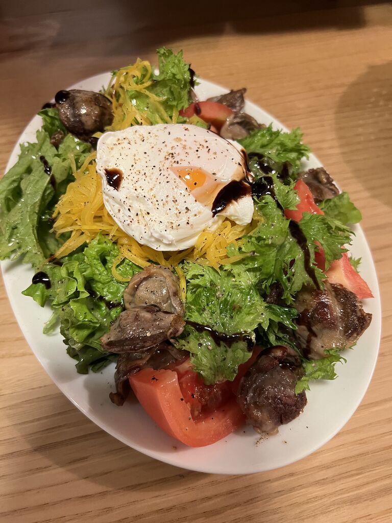 鶏砂肝のコンフィと半熟玉子のサラダ1490円