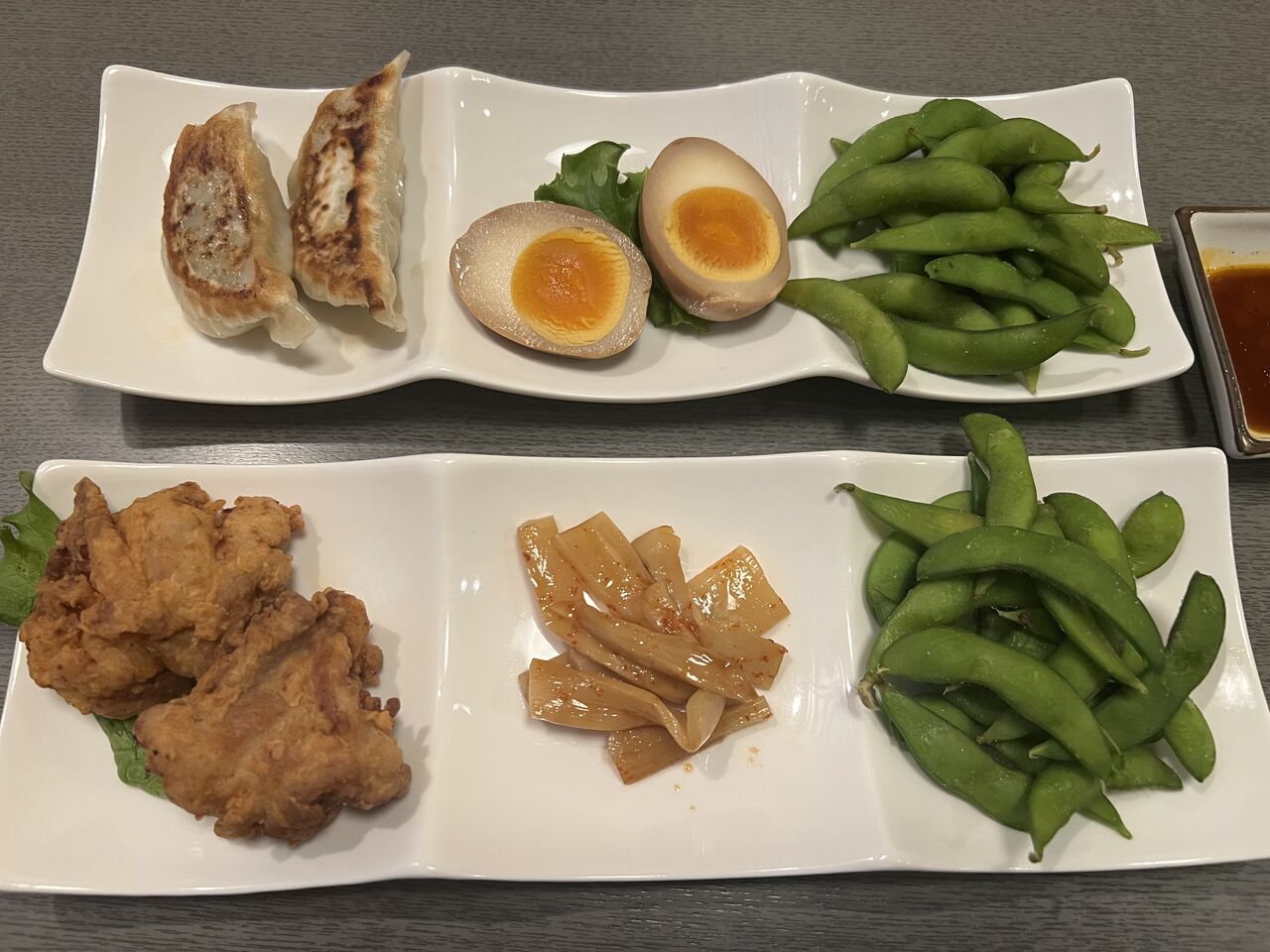 豚肉、イカ、エビ、紅生姜、玉ねぎ