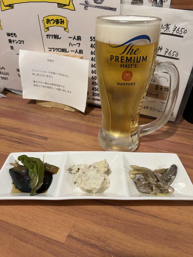 まずはビールとお通し。