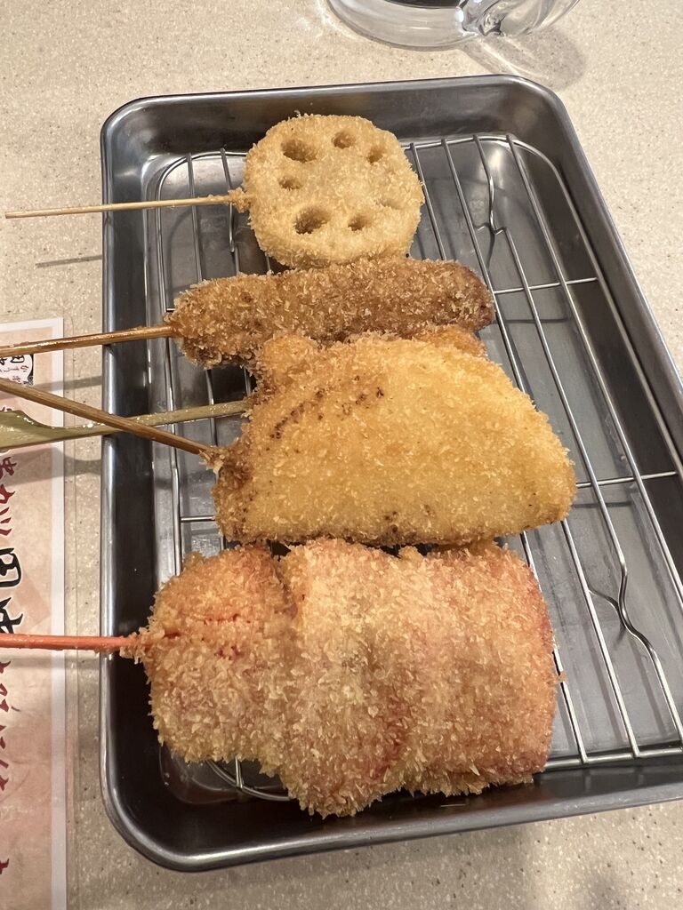 薄くカラッと揚がった串カツが美味しいね