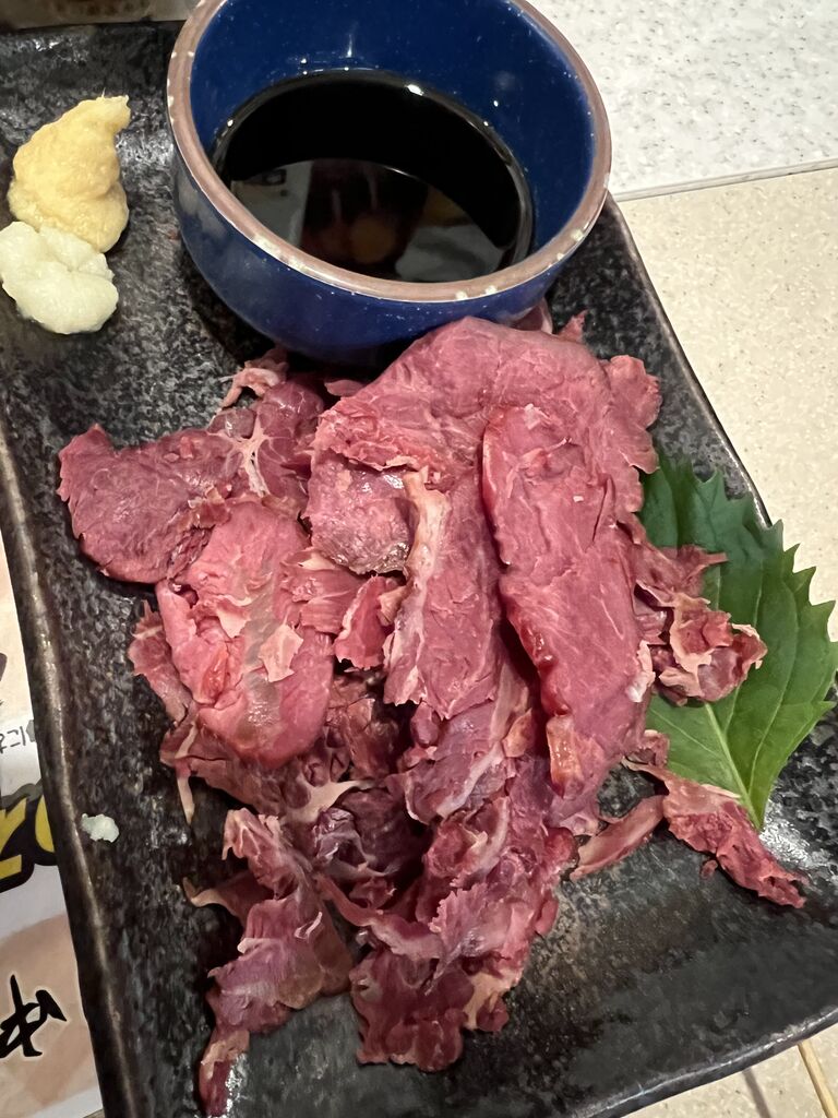 馬肉の燻製みたいな柔らかジャーキーみたいな。