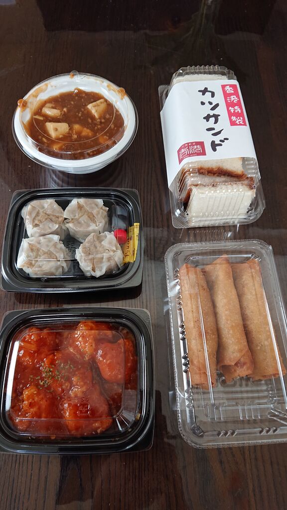 購入したのは、カツサンド、麻婆豆腐、各300円