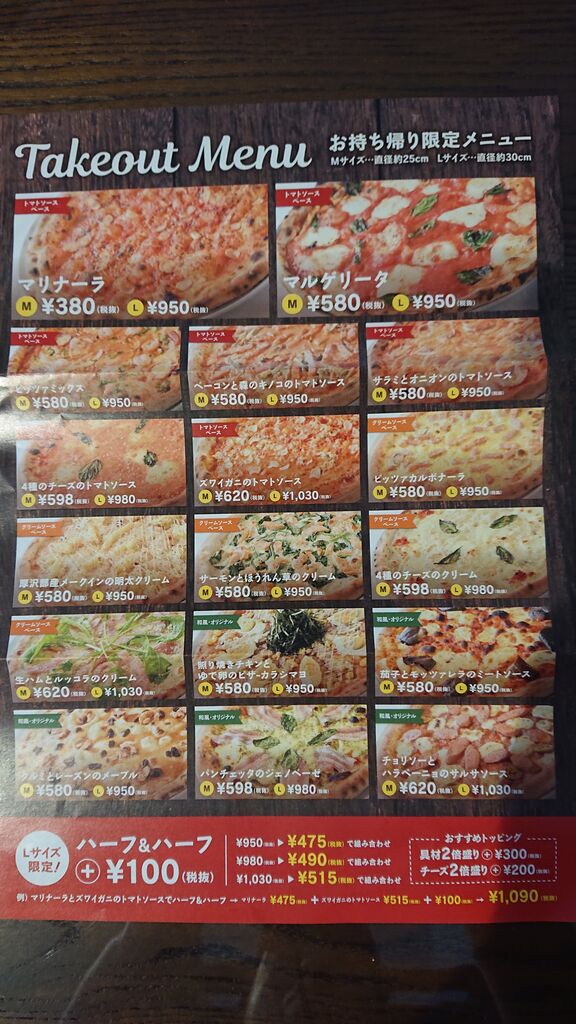 ハーフ&ハーフの値段設定が複雑っていうか、
