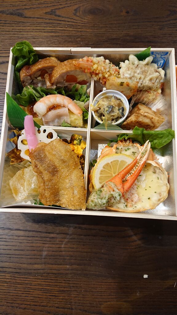 わらび餅、ずわいがに甲羅グラタン、かに爪磯部揚