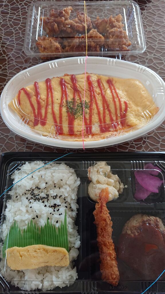 カツカレー、のり弁、からあげ弁当など。
