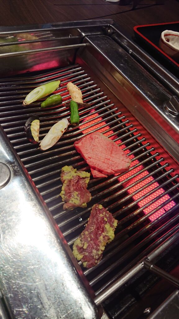 焼いたお肉にタレを多めにつけて、