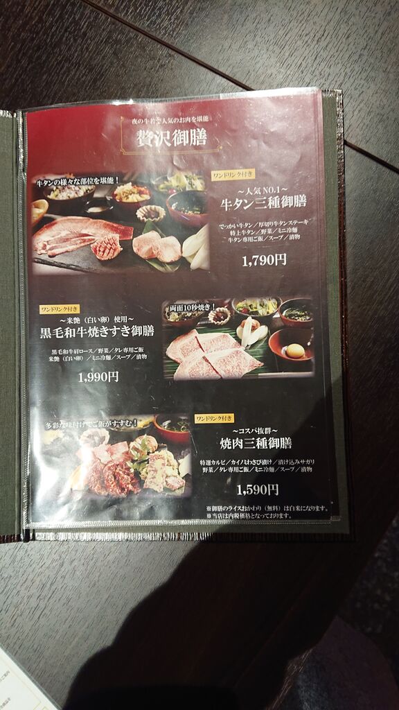 こちら、牛タン三種御膳1790円